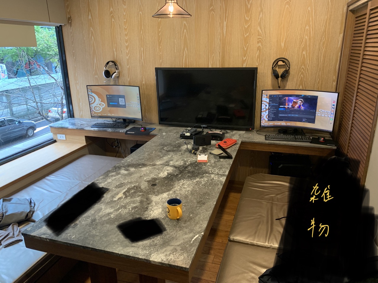 電腦配置應該是(顯卡 RTX3060)加上三星的曲面螢幕,不過我們主要都是接電視螢幕玩 switch 和自己的電腦遊戲。